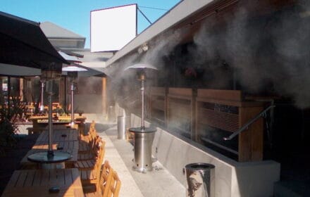 • Tại các quán cà phê, nhà hàng ngoài trời, máy phun sương giúp tạo không gian thoáng đãng, dễ chịu cho khách hàng, đặc biệt trong những ngày hè oi ả.